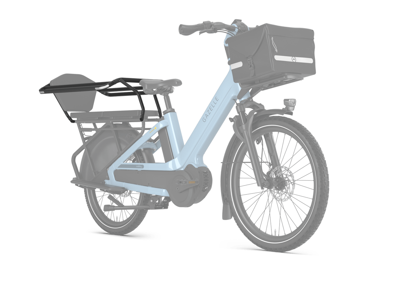 Op de Cabby neem je écht alles mee. Of het nou kinderen of spullen zijn. Met de accessoires maak je de combinatie die bij je past. Dankzij het MIK-systeem wissel je lekker snel. Wist je dat onze grote cargotas is op te splitsen in twee delen? Eén voor de kinderbeentjes en één voor de boodschappen, (sport)tassen of andere bagage. Je kunt de Cabby in totaal beladen tot maar liefst 200 kg.